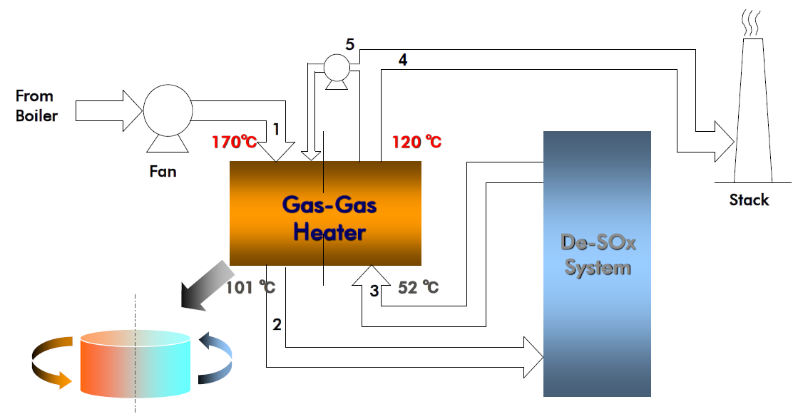 A Fan : Untreated gas E Fan : Treated gas to Untreated gas |