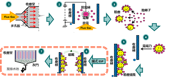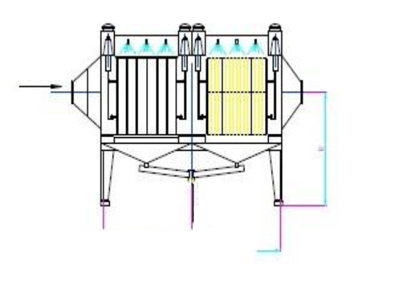採用立式或臥式安裝,用噴水等方式使平板集塵集表面形成一層流動水膜,將吸附在集塵集板上的粉塵沖走的電除塵裝置。